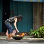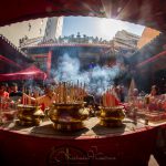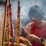 Venku na ulici už je pořádně rušno. Davem se prodírají Indky oděné do pestrobarevného sárí, kdežto čínská část obyvatelstva volí spíše rudý stejnokroj. To proto, že červená barva přináší štěstí. Podle pověry se nový rok začal slavit po zdolání mořské nestvůry, která měla zničit svět. Netvor ale nesnesl pohled na červenou barvu, oheň a hluk. Z této legendy vzešly zvyky doprovázející příchod nového roku – červené lampiony, které zdobí ulice a chrámy, ohňostroje a hlasité průvody. A právě červený oděv je ten nejvhodnější na první den nového roku a hlavně na návštěvu chrámu, kde je v tento den opravdu rušno.